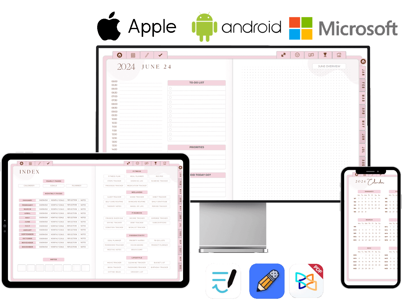 Yes. If you have downloaded the same app on all your devices, you can sync your digital planner, wherever you are, with the device you have at that time. Our guide explains it clearly, which is included with your purchase.